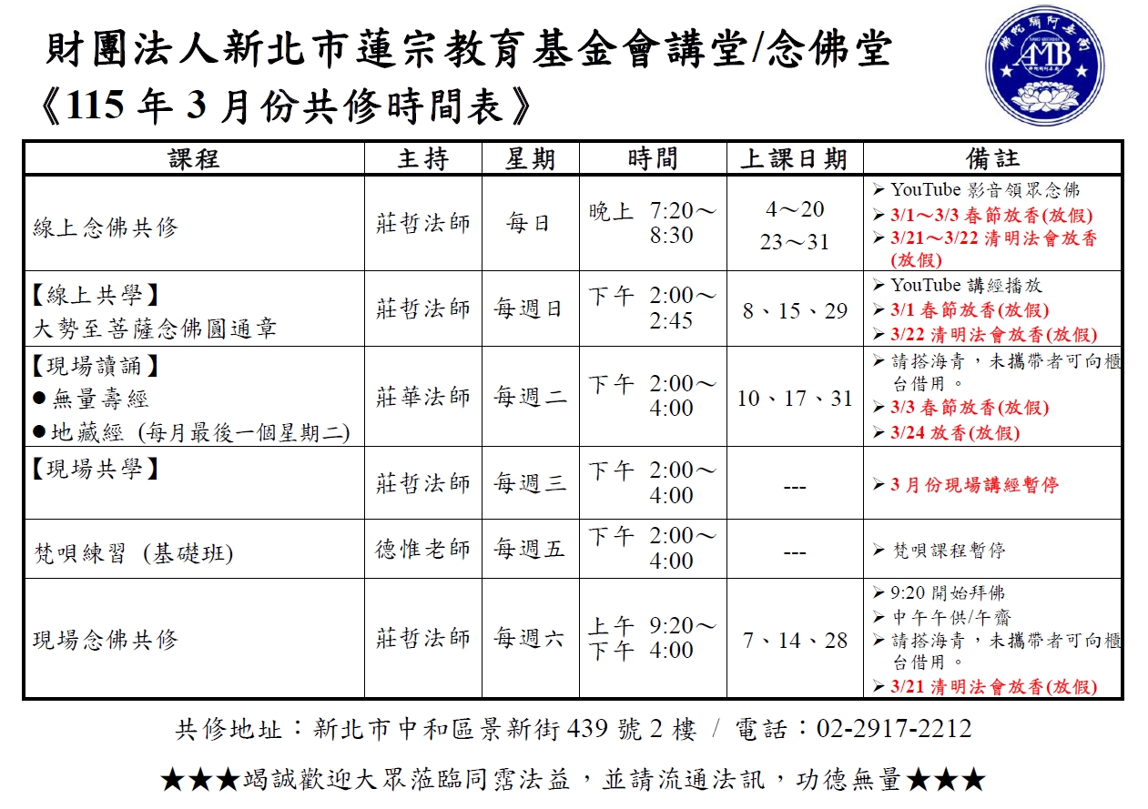 115年3月份共修訊息