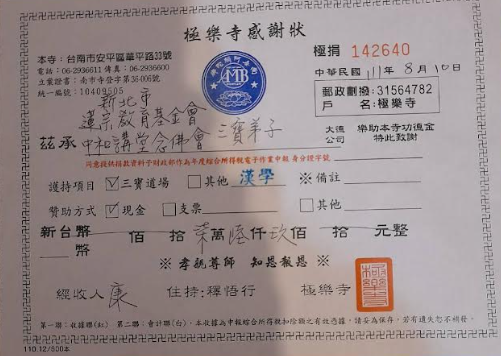 師父及諸位同學好, 8月10日極樂寺一會依表訂時間圓滿完成行程平安回到台北。感謝幾位同修的關心,我們沒有受到南部下大雨的問題,一路行車平安。 為減少寺院的工作量,在車上代收與會人員以及未能同行代轉的供養金,明細如下及本次行程照片與提供大家參閱,並請轉傳給您所邀請的親友。希望藉這個平台,為台灣教育盡一點心力,敬請多多指教。