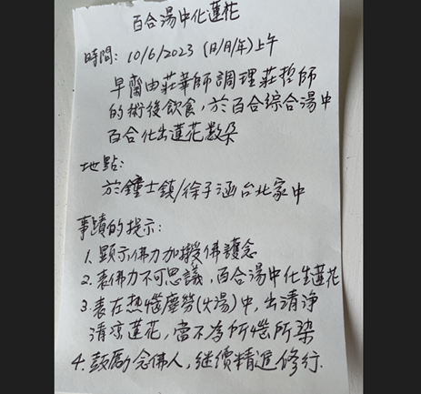 以下係是哲師父出院後借住同修電梯房子休養時之6/10(六)的手札及佛力不可思議的記錄照片;