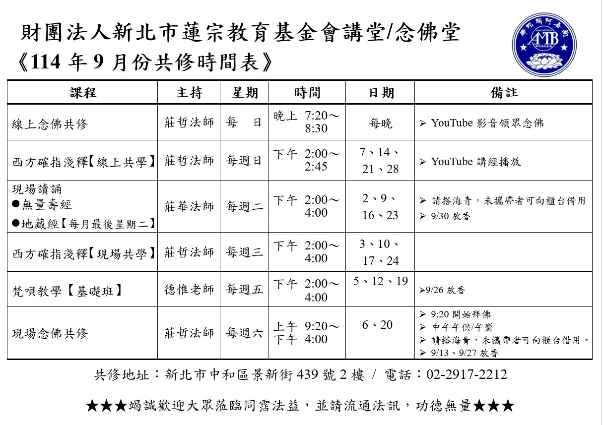 114年9月份共修訊息