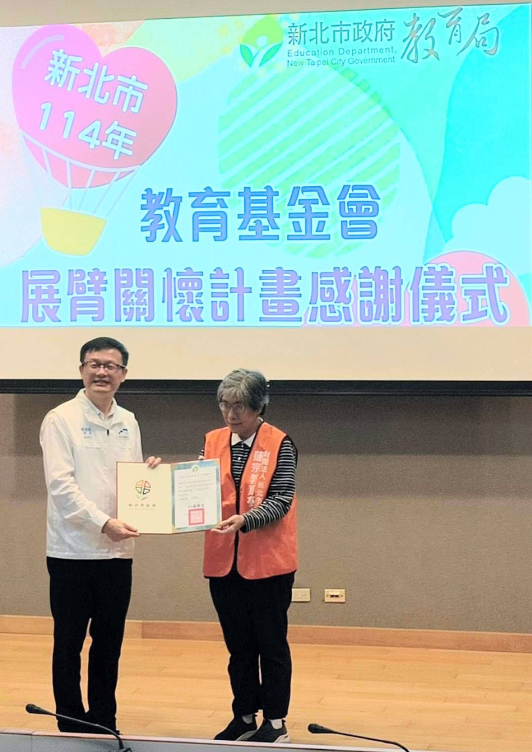 本基金會應邀參加新北市教育局舉辦之「新北市114年教育基金會展臂關懷計畫感謝儀式」,並接受頒獎。